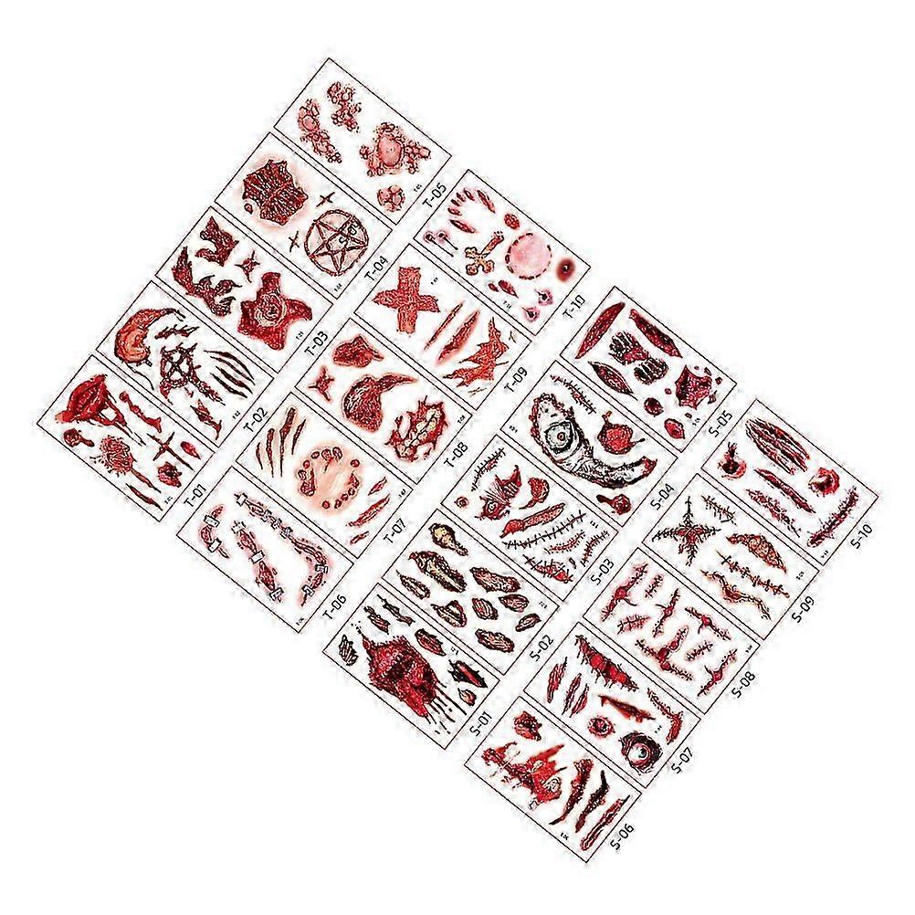 Halloween Scar Stickers Halloween Decor Horror Party Assorted Color Water Transfer for 20 Sheets