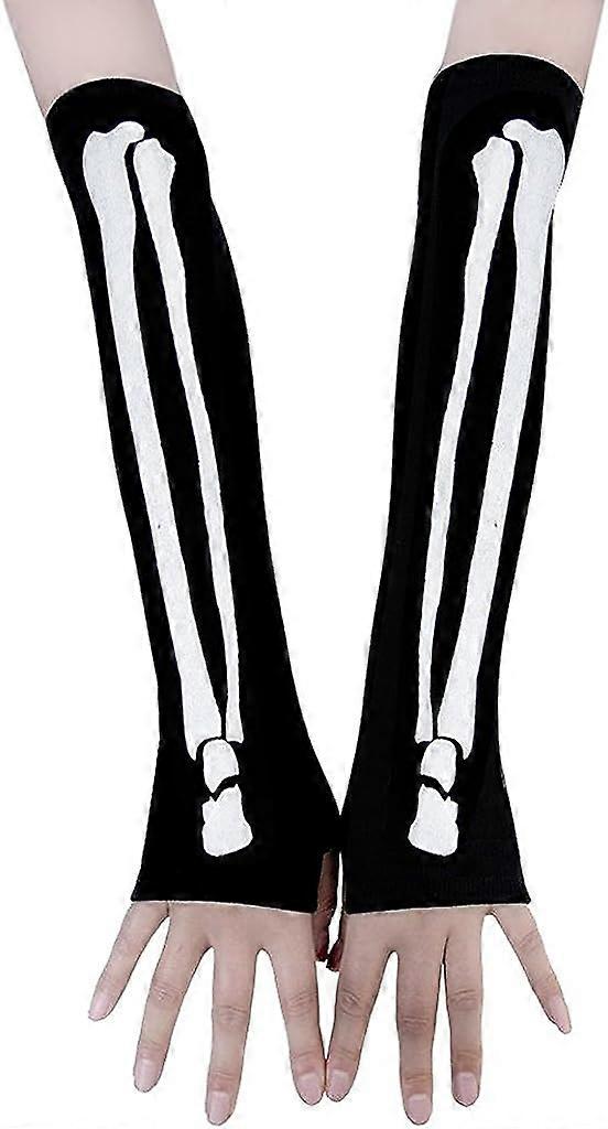 4 This skeleton long sleeve gloves are made of cotton materail, it is thin, easy to fit your hands, elbows