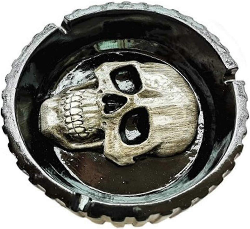 Halloween Skeleton Skull Head Ashtray Retro Antique Cigarettes Ashtray Halloween Table Centerpieces(Black)(1pcs)