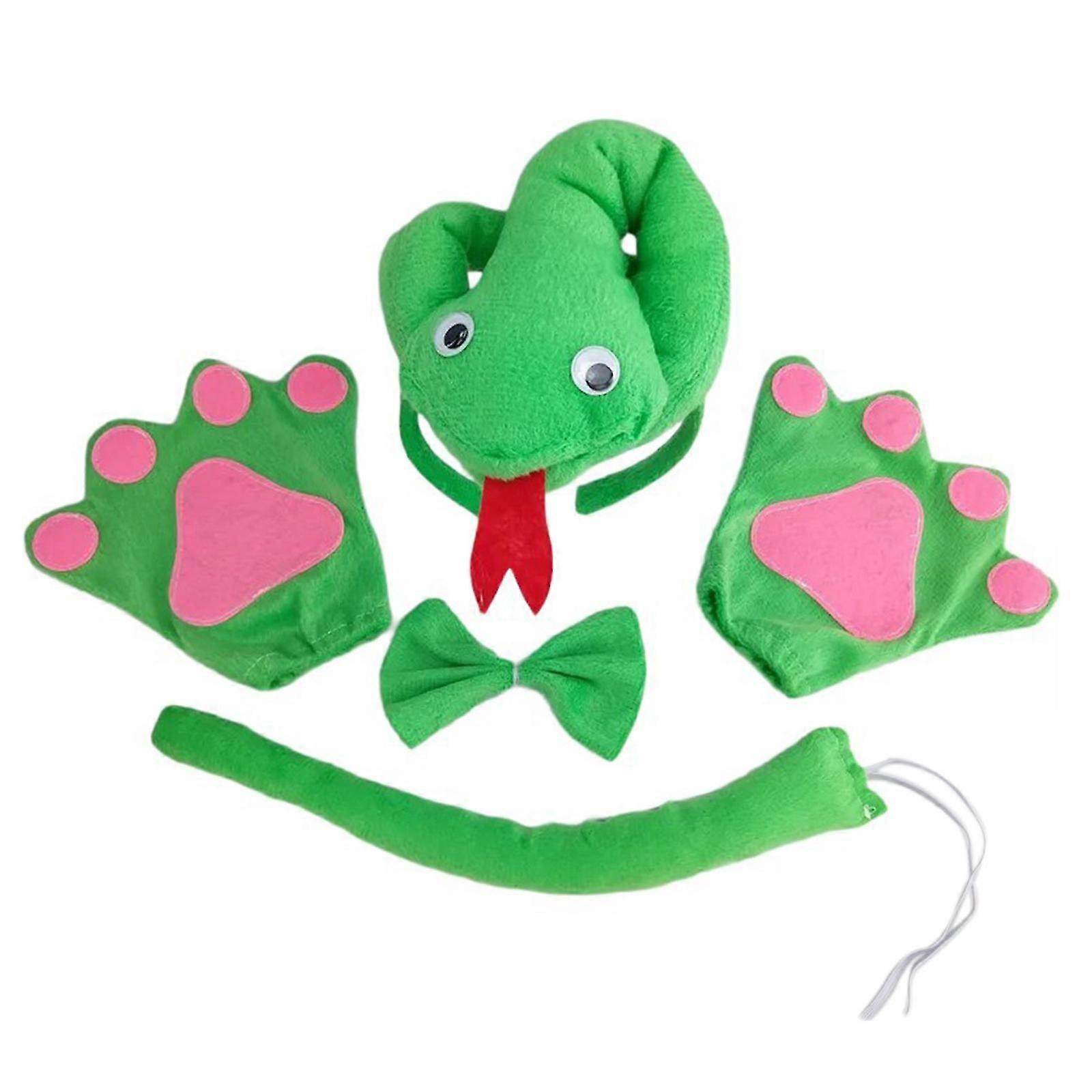 Halloween Snake Cosplay Costume Set, Snake Hairband Tail Glove and Bowtie, Snake Cosplay Costume Set for Kid Adult