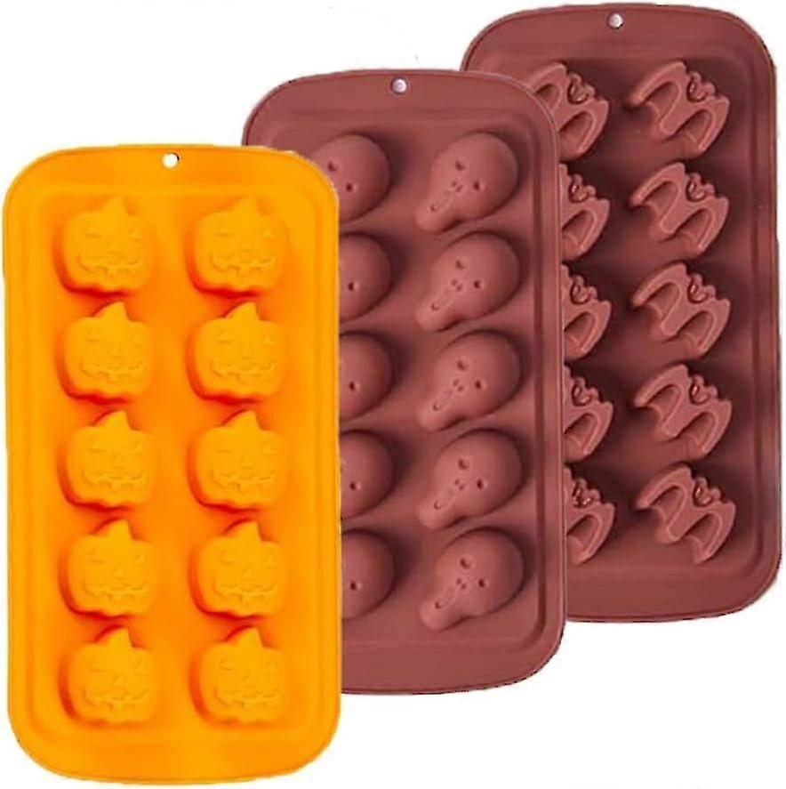 Halloween Chocolate Mould Silicone Fondant Moulds Skull Bat Pumpkin Ice Cube Tray Candy Cookies Soap Dessert Baking Mold for Cake Decorating Cupcake D