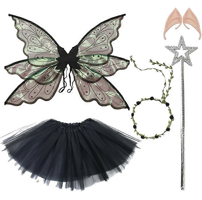 Halloween decorations Black 4-piece set [without wings]68*43Butterfly fairy wings tulle skirt set 6 pieces angel adult children stage holida