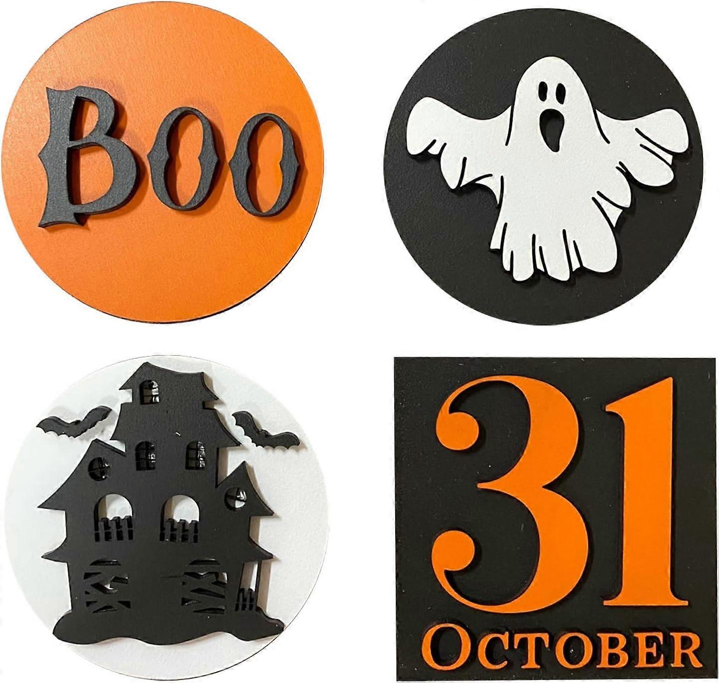 Halloween Tiered Tray Decorations Halloween Farmhouse Autumn Fall Supplies Rustic Desk Decorations 4pcsMulti-colour