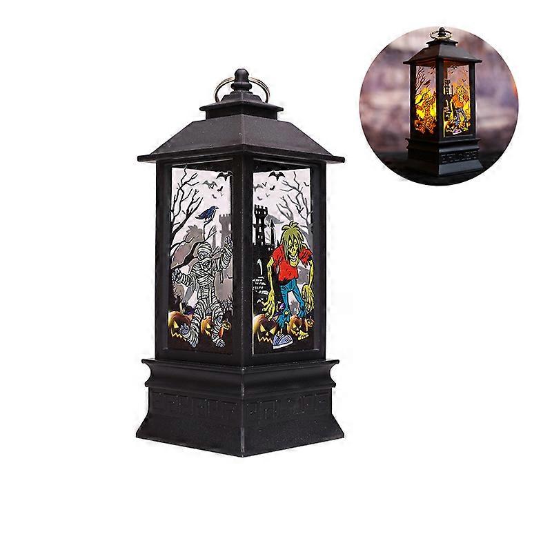 Halloween Wind Lantern LED Electronic Candle Light Pumpkin Lantern Plastic Decorations Ghost Festival(1pcs, black)