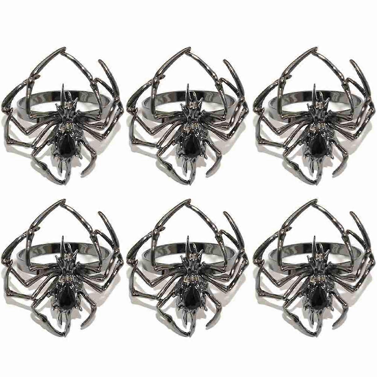 Halloween Napkin Ring Holder Set of 6,Spider Napkin Ring Buckle Spooky Rhinestone Napkin Rings Hold