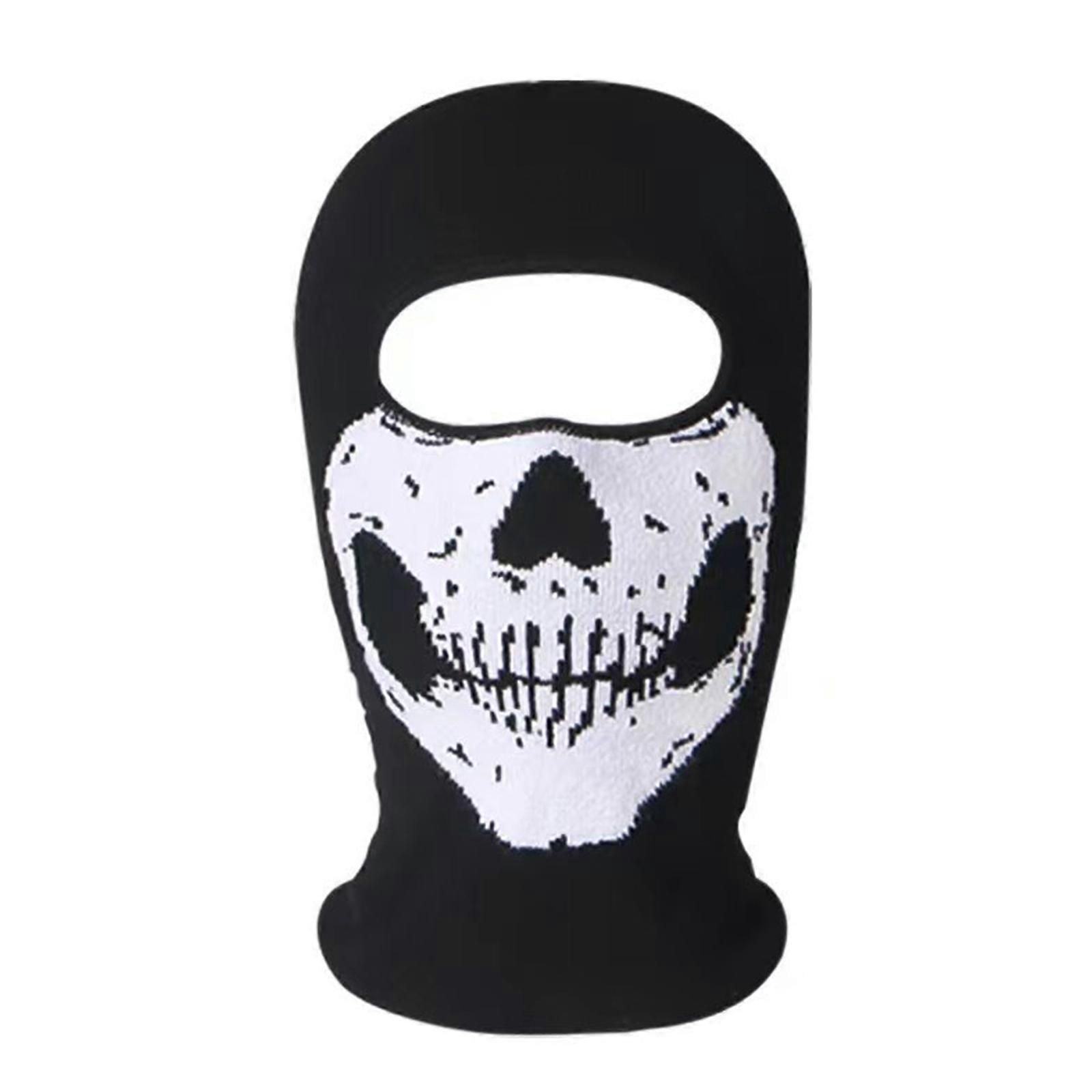 Halloween Knitted Jacquard Hat Beanies Warm Full Face Cover Ski Mask Hat Windproof Balaclava Hat for Men Womens Black and White