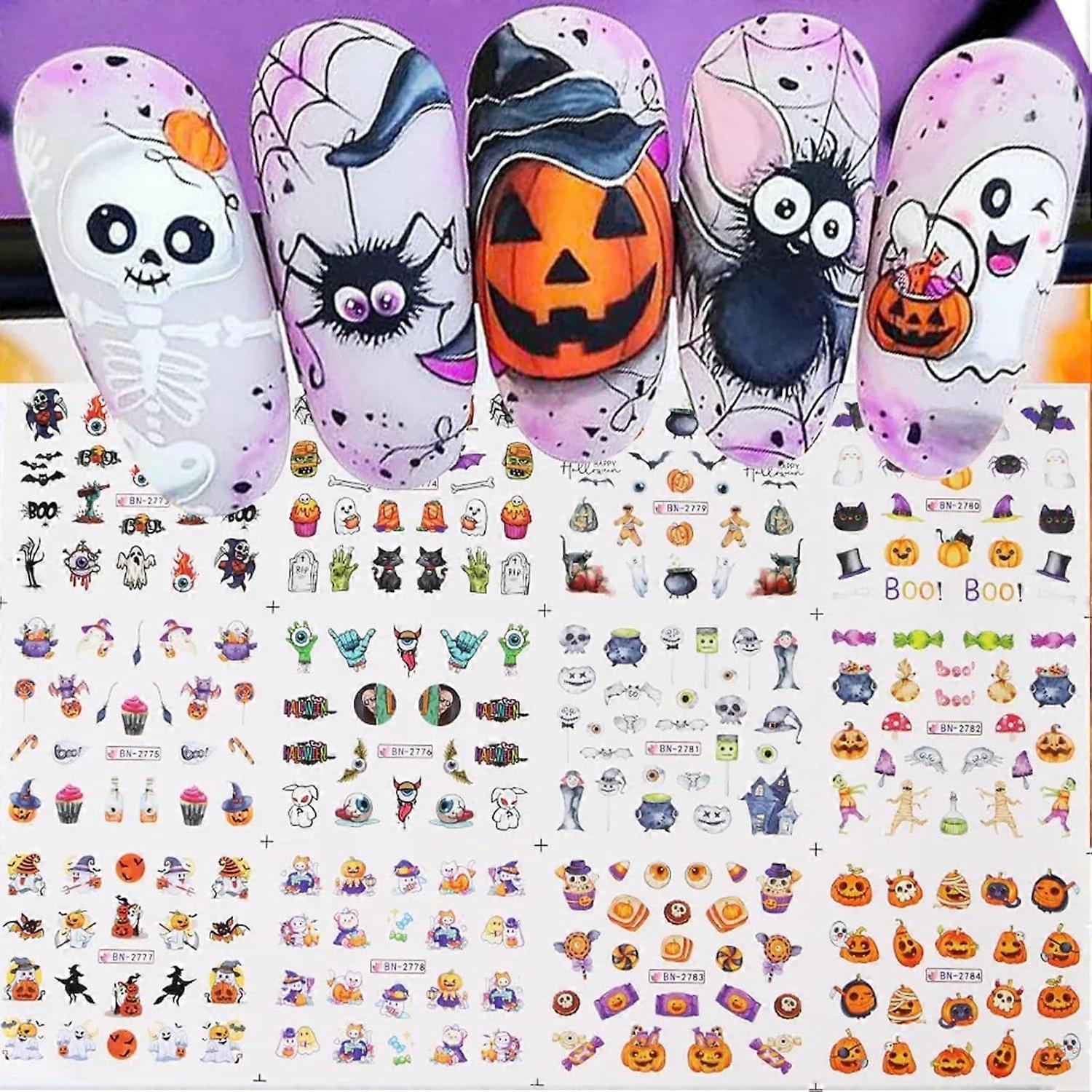Halloween Nail Art Stickers Water Transfer Nail Decals Pumpkin Skull