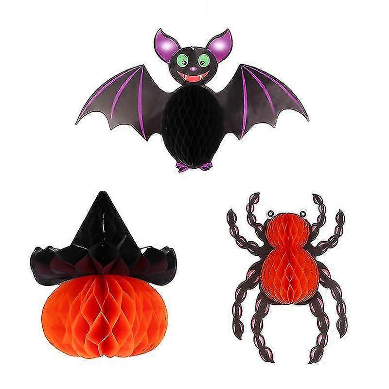 Halloween Party Bats Spider Hanging Decoration Honeycomb Balls Pendantsblack+orange3pcs