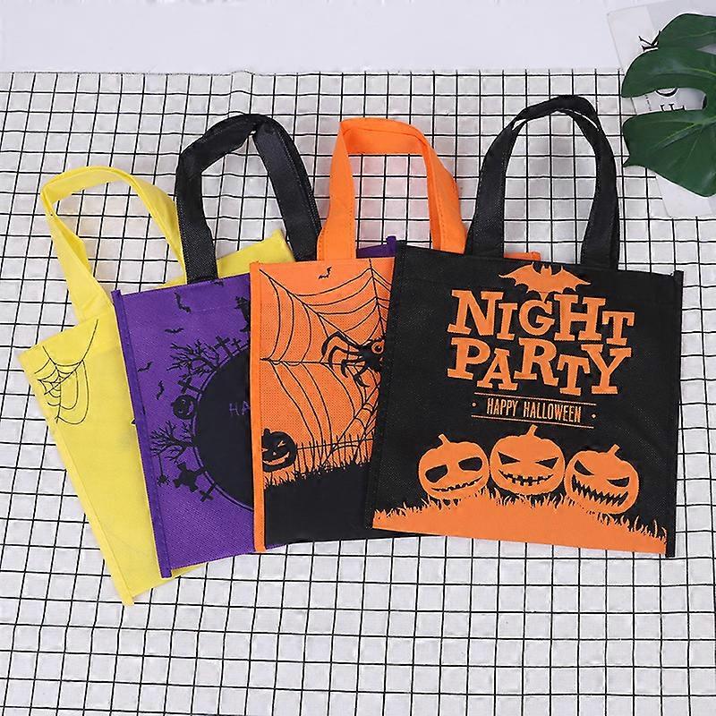 Halloween Party Treat Bags Goodie Bags with Handle Trick or Treat Bags Non-Woven Reusable Candy Bags for Shopping Gift Skull Pumpkin Web Spider(4 pcs,