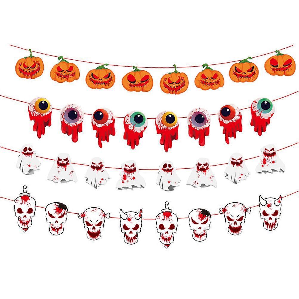 Halloween Party Banner Paper Garland for Doorway Wall Mantel Shopping Mall Assorted Color Decoration 4sets