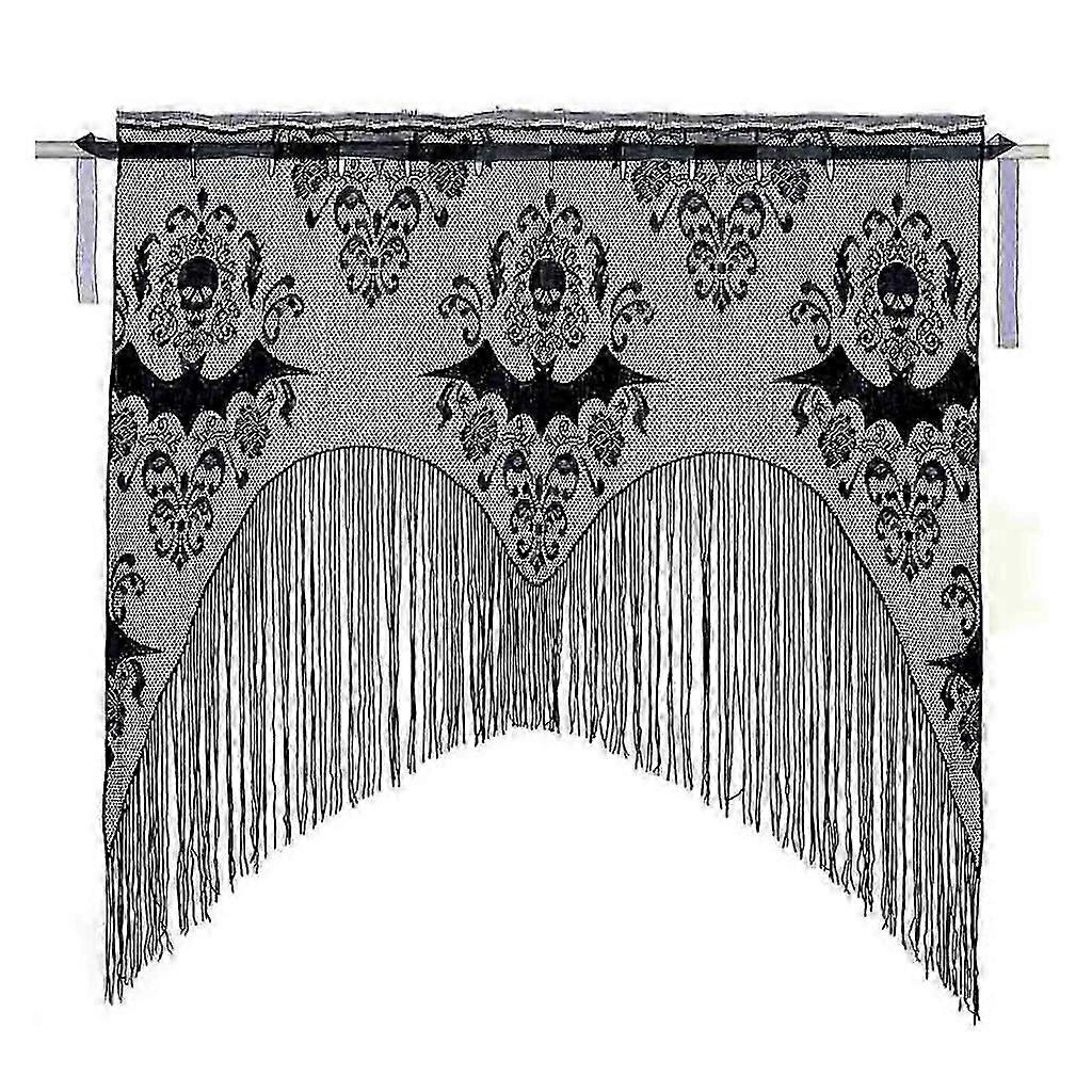 Halloween Black Lace Skull Tassel Curtain Halloween Door Window Valance Decor