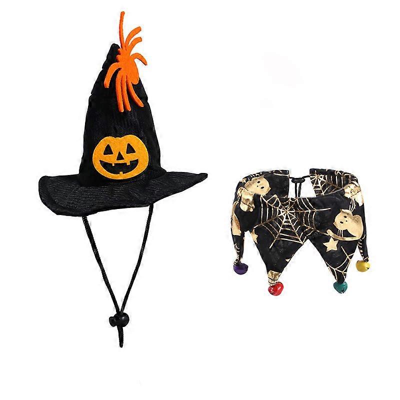Halloween pet hat cat cape hat scarf set skull cat spider web pattern cape(1sets)