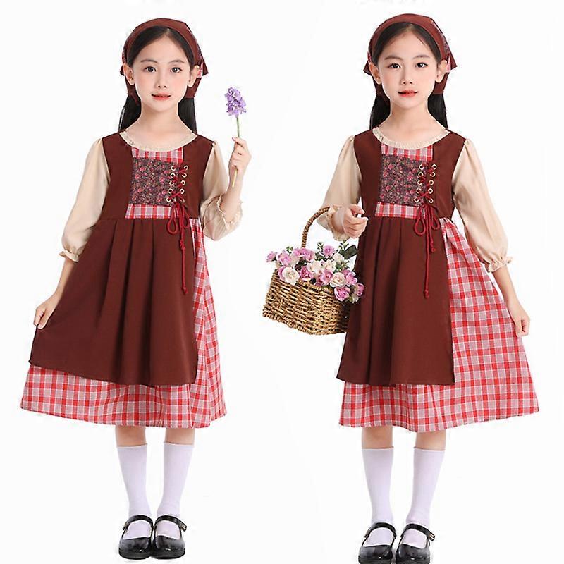 Halloween Matchstick Pastoral Children's Adult Plaid Dress Art Retro Linen Fake Two-Piece Skirt Performance