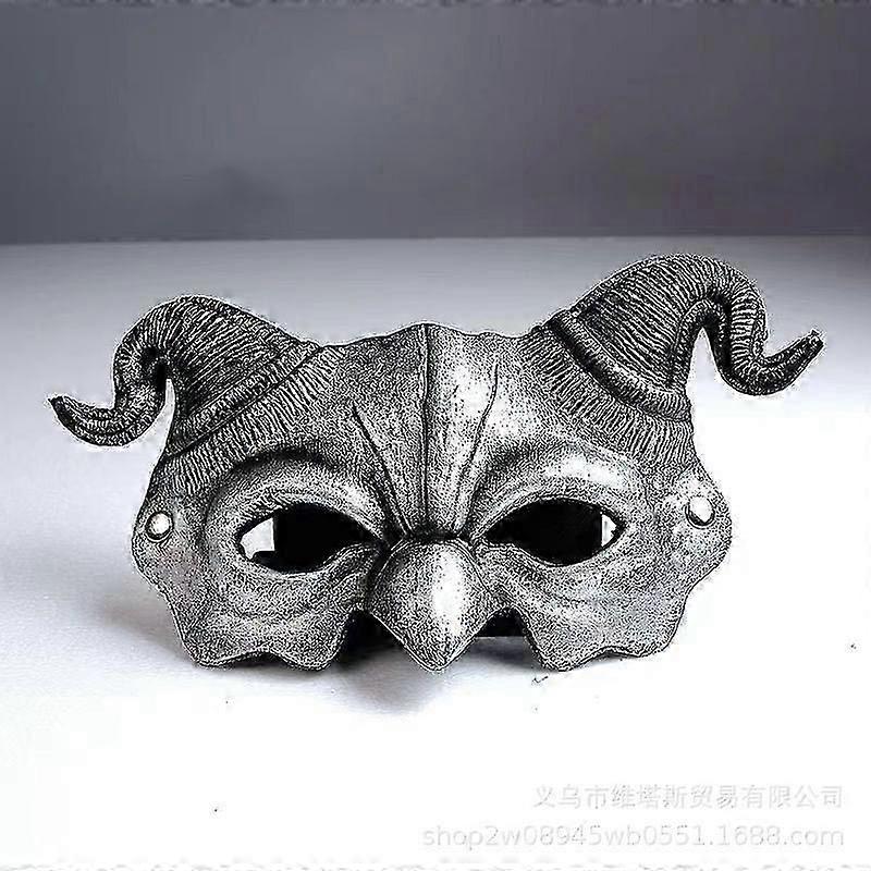 Description This Halloween party half-face demon mask with ram horns is designed to elevate your costume game. Featuring a realistic and creepy design, it combines intricate details with a comfortable fit. for masquerades, cosplay events, or themed parties, it adds a touch of mystery and horror to your look. Features -Color:Silver -Material:PU -Size:31.00X17.00X2.00cm/12.18X6.68X0.79in -Realistic design: the halfface goat horn devil mask features a lifelike design that adds a spooky yet stylish touch to your halloween or cosplay costume -Breathable and comfortable: made of pu material, this mask is lightweight, breathable, and comfortable to wear for extended periods during parties or events -Wide vision: the large eye holes ensure unobstructed peripheral vision, allowing you to enjoy the festivities without any discomfort -Adjustable fit: equipped with an elastic strap, the mask offers a snug and secure fit for adults, making it easy to put on and take off -Versatile use: for halloween, masquerade parties, cosplay events, this mask is a musthave accessory for any costume enthusiastPackage list: 1 x Sheep Horn Demon Mask