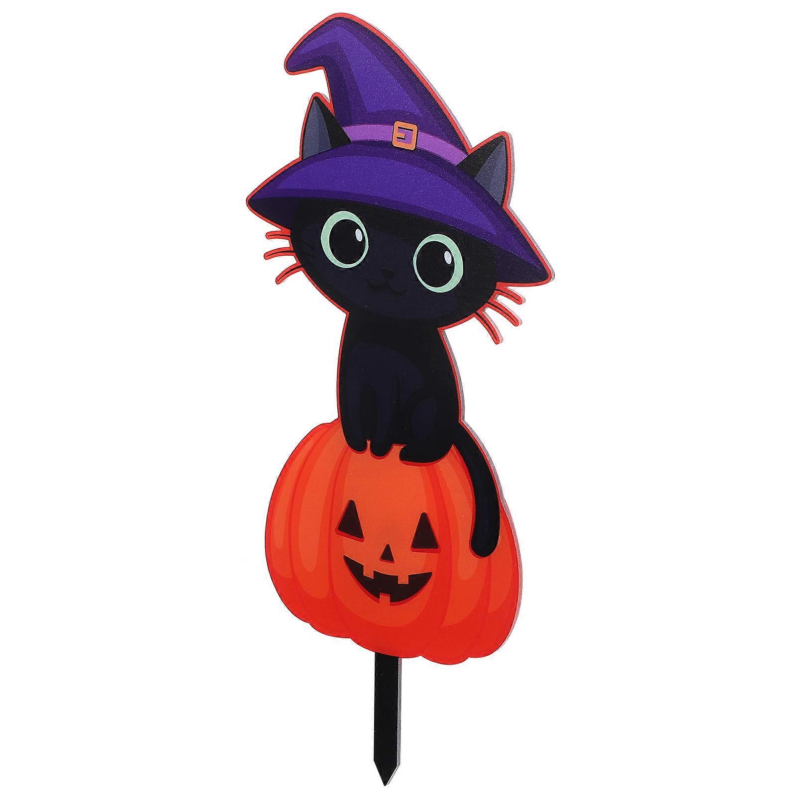 Halloween Yard Stake Sign Pumpkin Shape Double Sided Printing Halloween Party Garden Prop Durable Acrylic 1Set