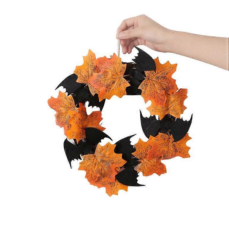 Halloween Wreath is the perfect autumn home decoration, it will make your front door more attractive. Halloween Maple Leaf Floral Hoop is suitable for your desk, table, garland, terrace, scaffolding, bushes, hedges, fences, pillars, restaurants, bars, trees, haunted houses or any place that needs decorative lighting.