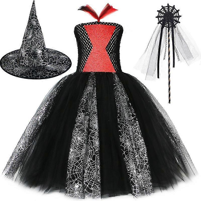 Halloween Children's Clothing Girl Spider Web Witch Dress Dress Witch Dress Mesh Poncho Dress