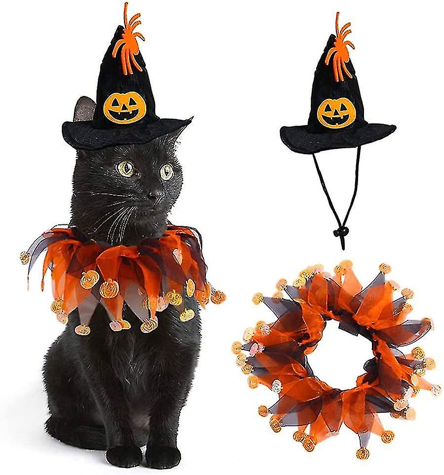 Halloween Cat Cosplay, Pet Apparel Halloween Cat Clothes Costume Hat Pet Party Cloak