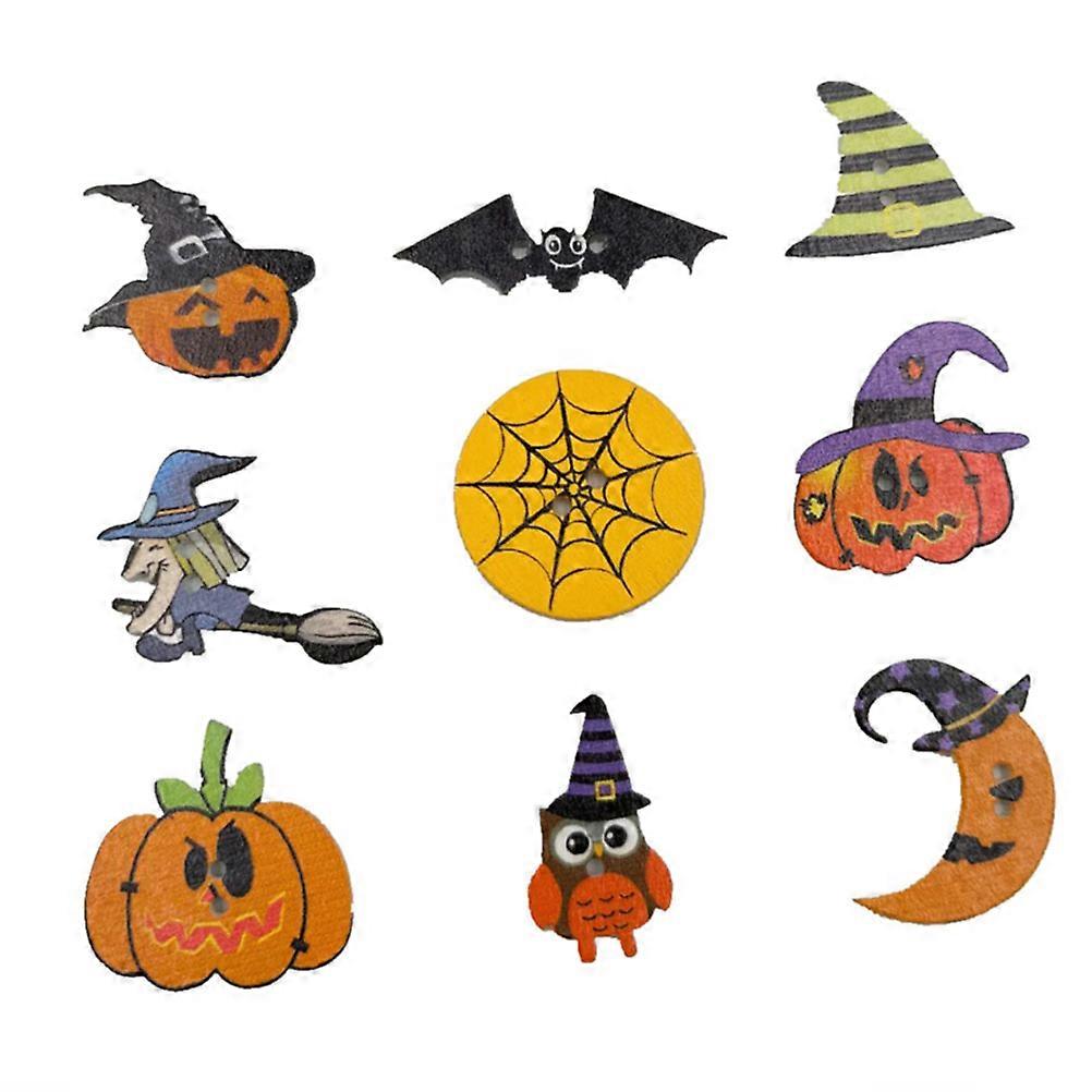 Halloween Decorative Buttons Wooden Sewing Buttons for Sewing Use 50Pcs