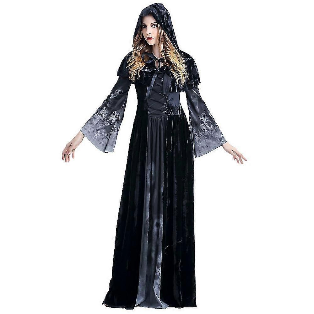 Halloween Cosplay Grim Reaper Long Dress Robe Horror Skeleton Vampire Cosplay Play Costume
