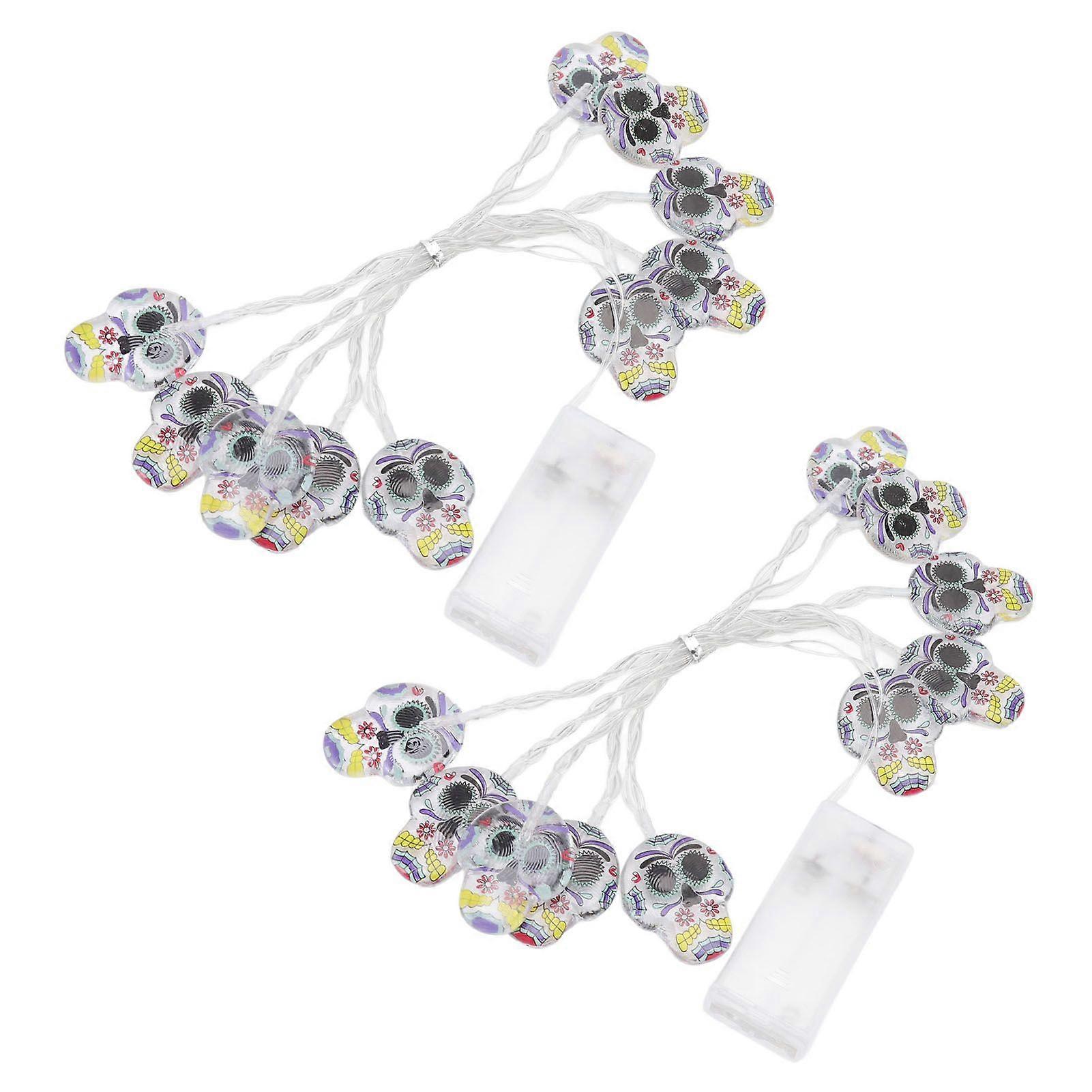 2Pcs Halloween Skull String Lights Holiday Horror Decorative String Lights for Indoor Outdoor Scene Arrangement