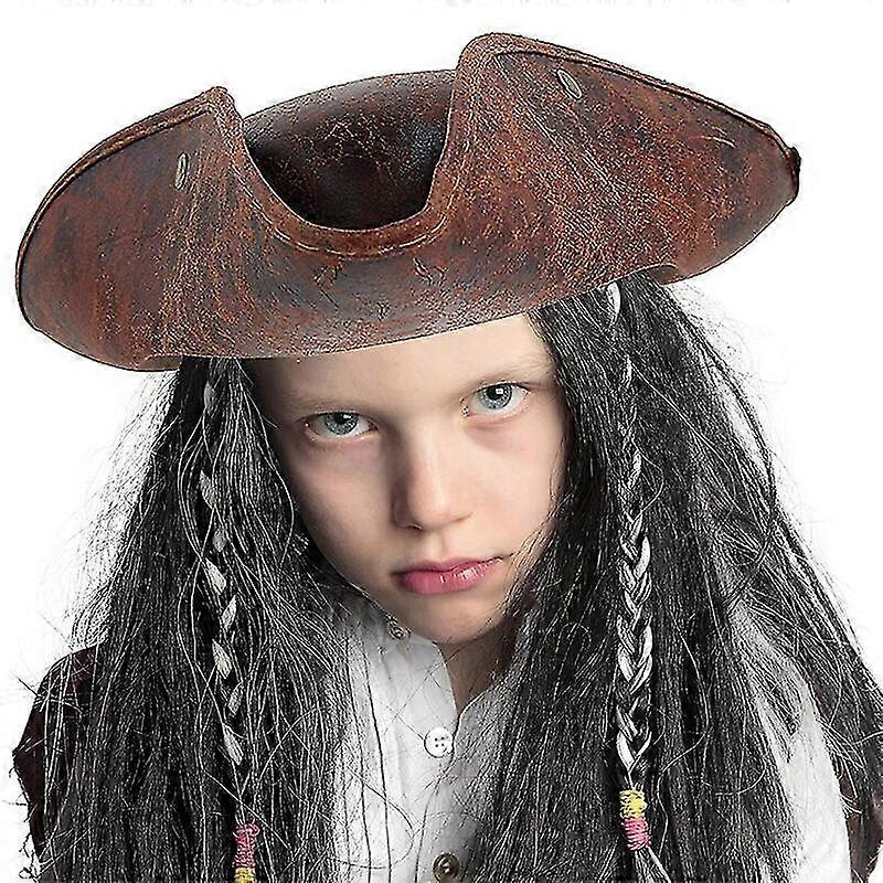 Halloween Brown Distressed Pirate Tricorn Hat Masquerade Party Men Women Faux Leather Pirate Costume Accessories Hats