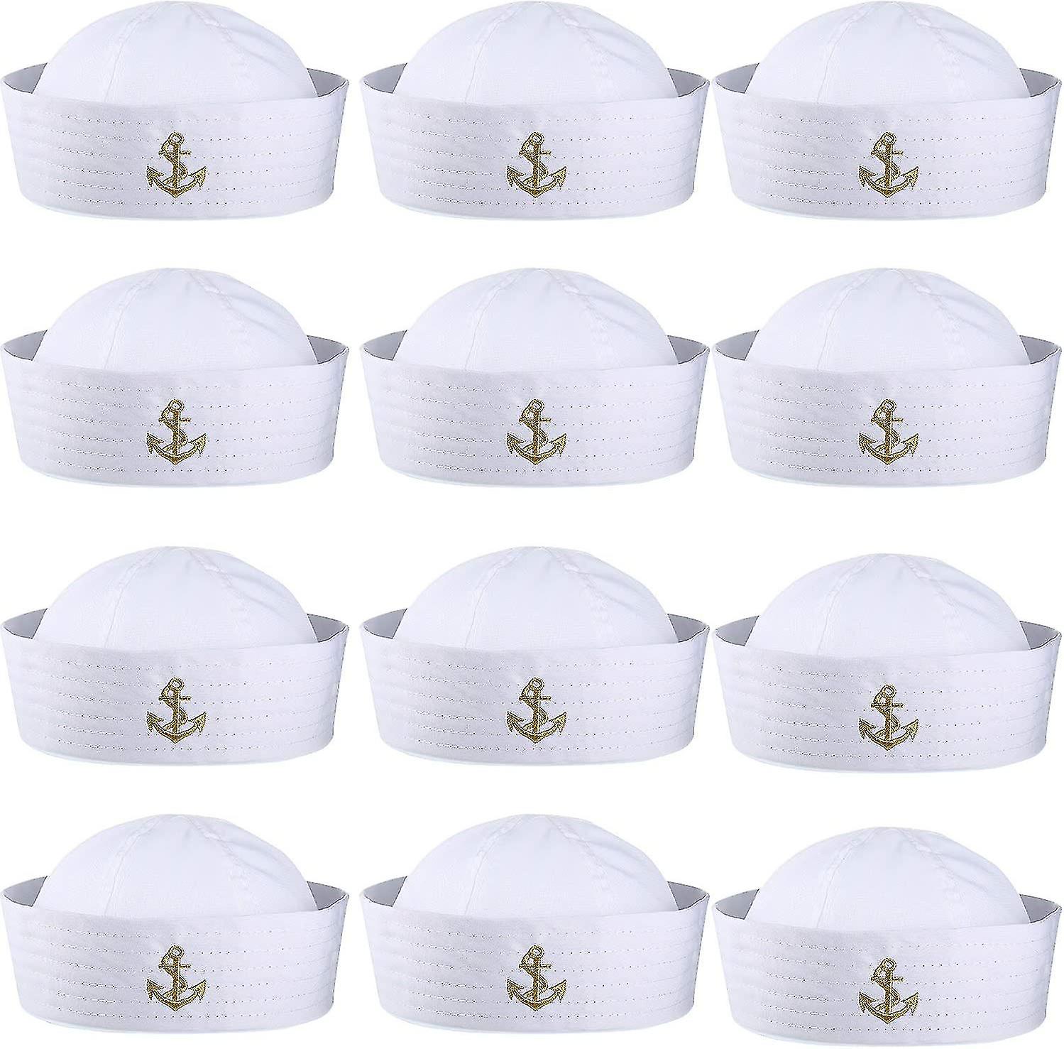 12 Pieces Halloween White Sailor Hat Captain Caps Yacht Nautical Hats For Adult Sailor Costume, Dress Up Party Hats