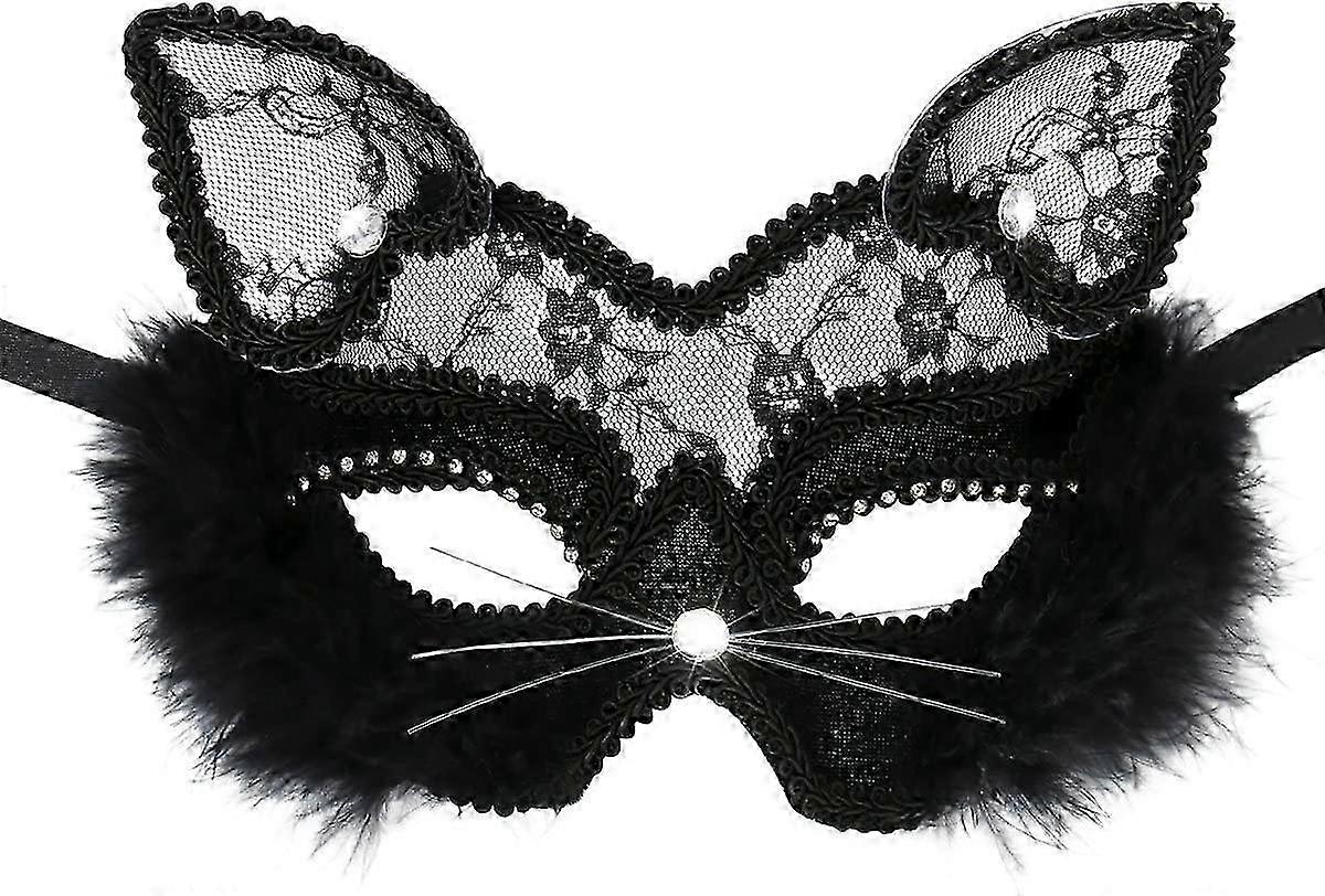 Halloween Masquerade Sexy Lace Female Cat Mask (Black) 1 Pieces