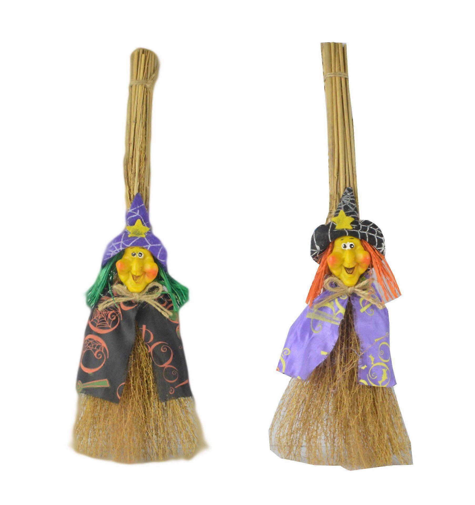Halloween Witch Broom Fancy Dress Prop Halloween Hanging Pendant Decoration Witches Broomstick Decor Haunted House Party Decoration Props Flying Witch