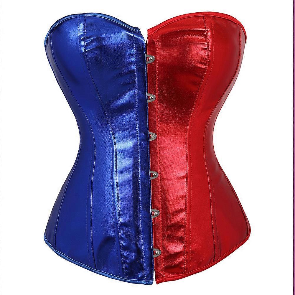 Halloween Sexy Women Blue Red Splicing Clown Corset Beach Party Gothic Bustier Overbust Lingerie