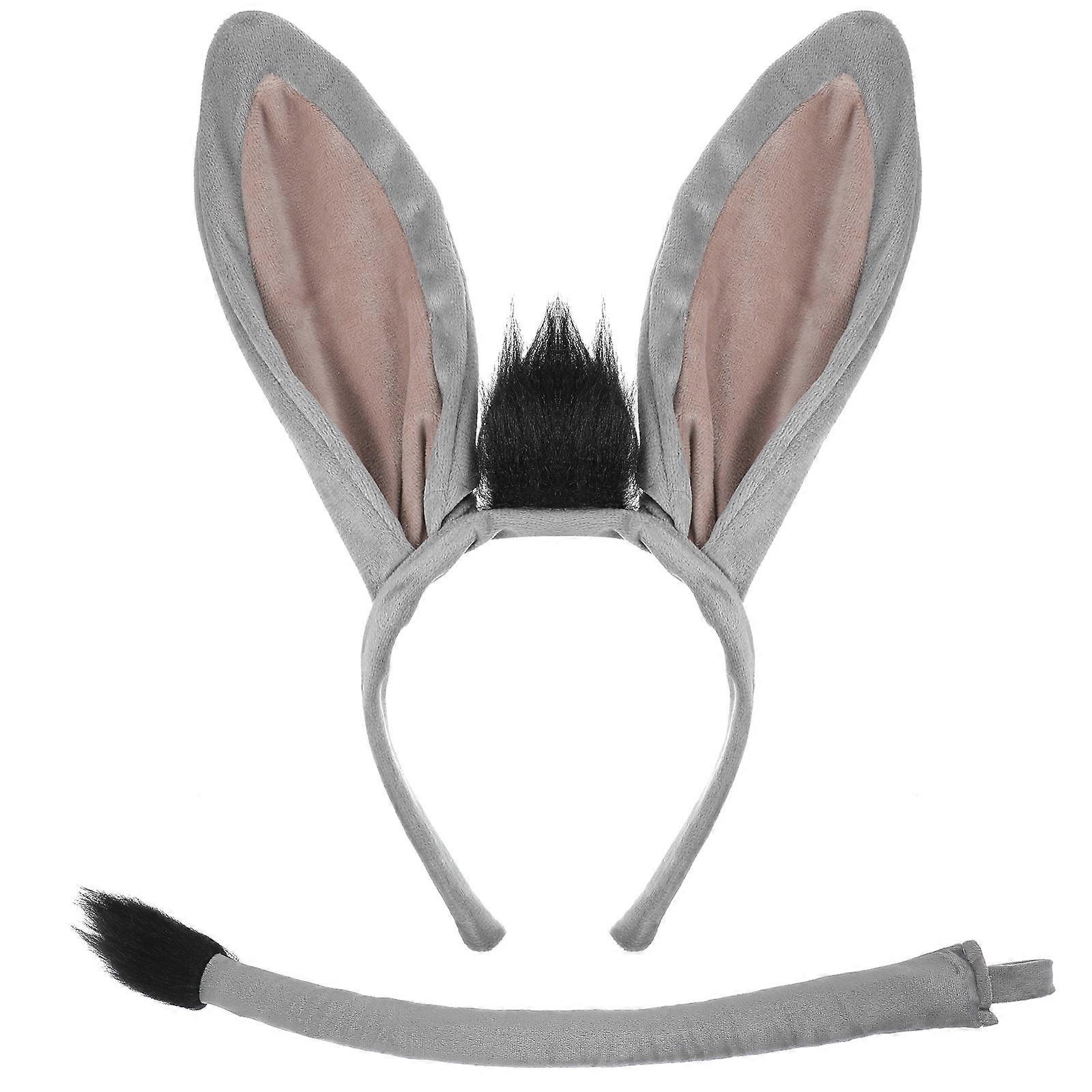 Donkey Costume Accessory Set For Adults And Kids In Grey Featuring Plush Ears And Tail For Halloween And Birthday Parties 4Pcs