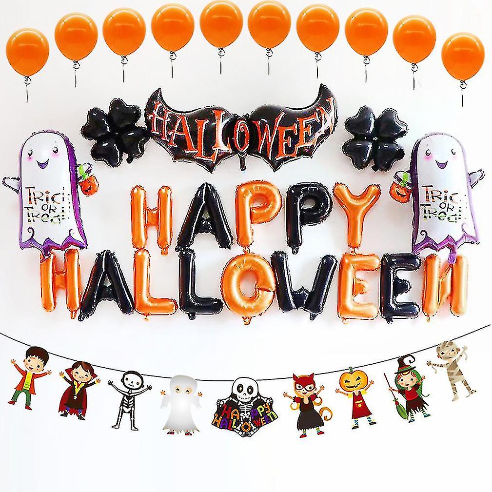17pcs Happy Halloween Balloon Kit Latex Foil Balloons For Halloween