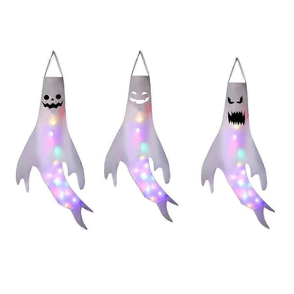 Easy to Hang Halloween Windsocks, Battery Powered, Scary Expressions, Polyester Fabric, Outdoor Decor, Waterproof Fabric, String Lights, Halloween