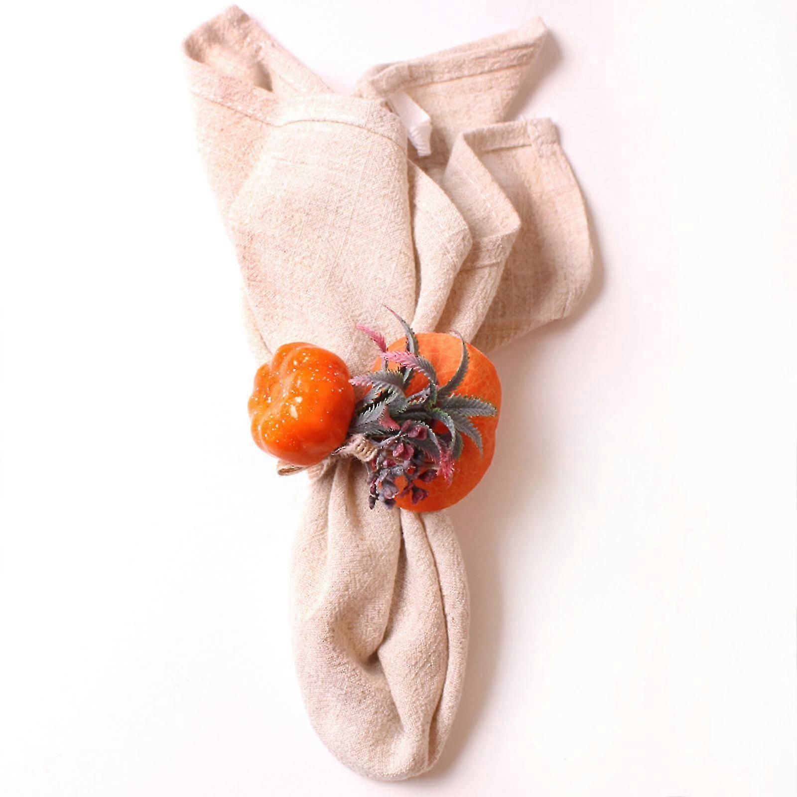 Halloween Pumpkin Napkin Rings - Set Of 6, Handmade Woven Maple Leaf Thanksgiving Napkin Holders With Flower Decoration