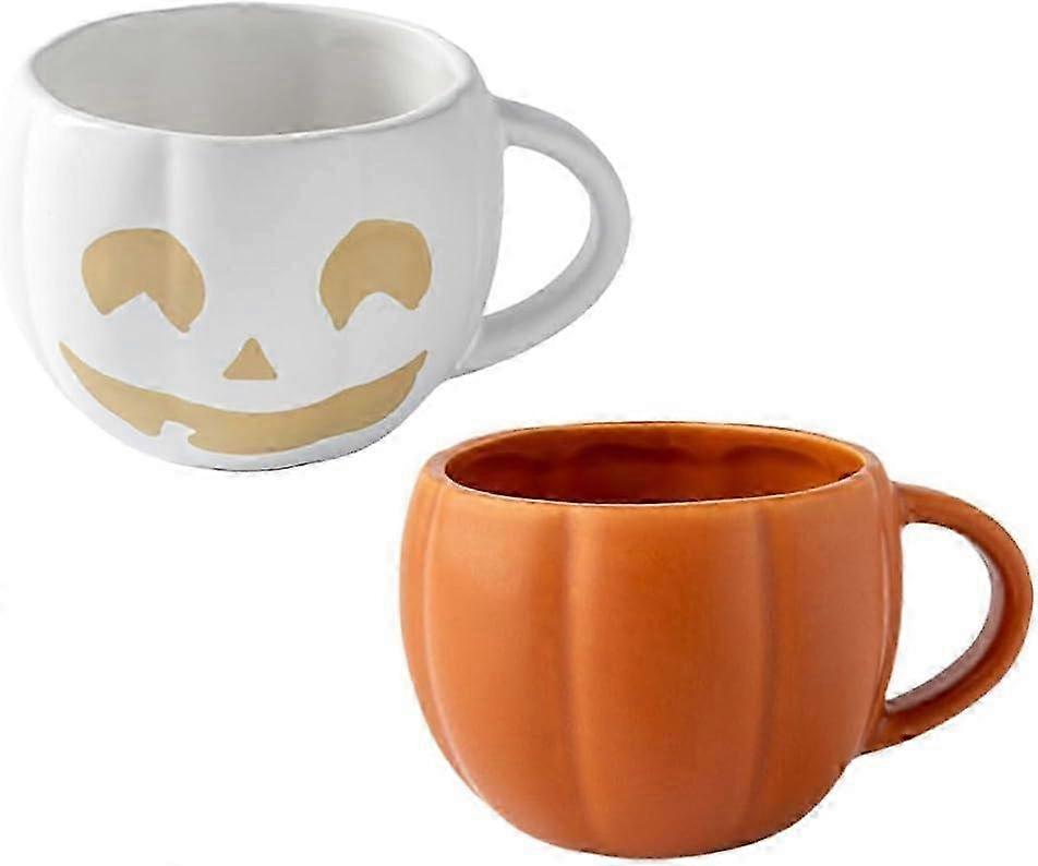 Halloween Pumpkin Mug Set - 2 Ceramic Coffee Cups for Tea, Milk, Soup, Cereal, Candy, Funny Gift