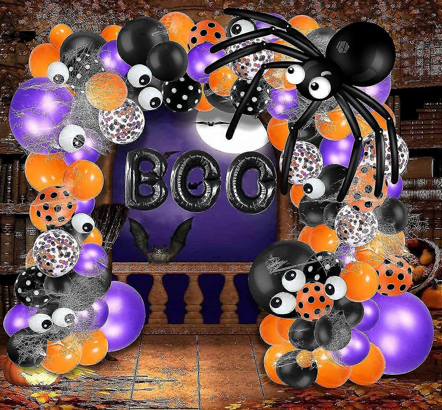 Halloween Balloon Garland Arch Kit With Halloween Spider Web, Boo Aluminum Foil Banner Balloons For Halloween Day