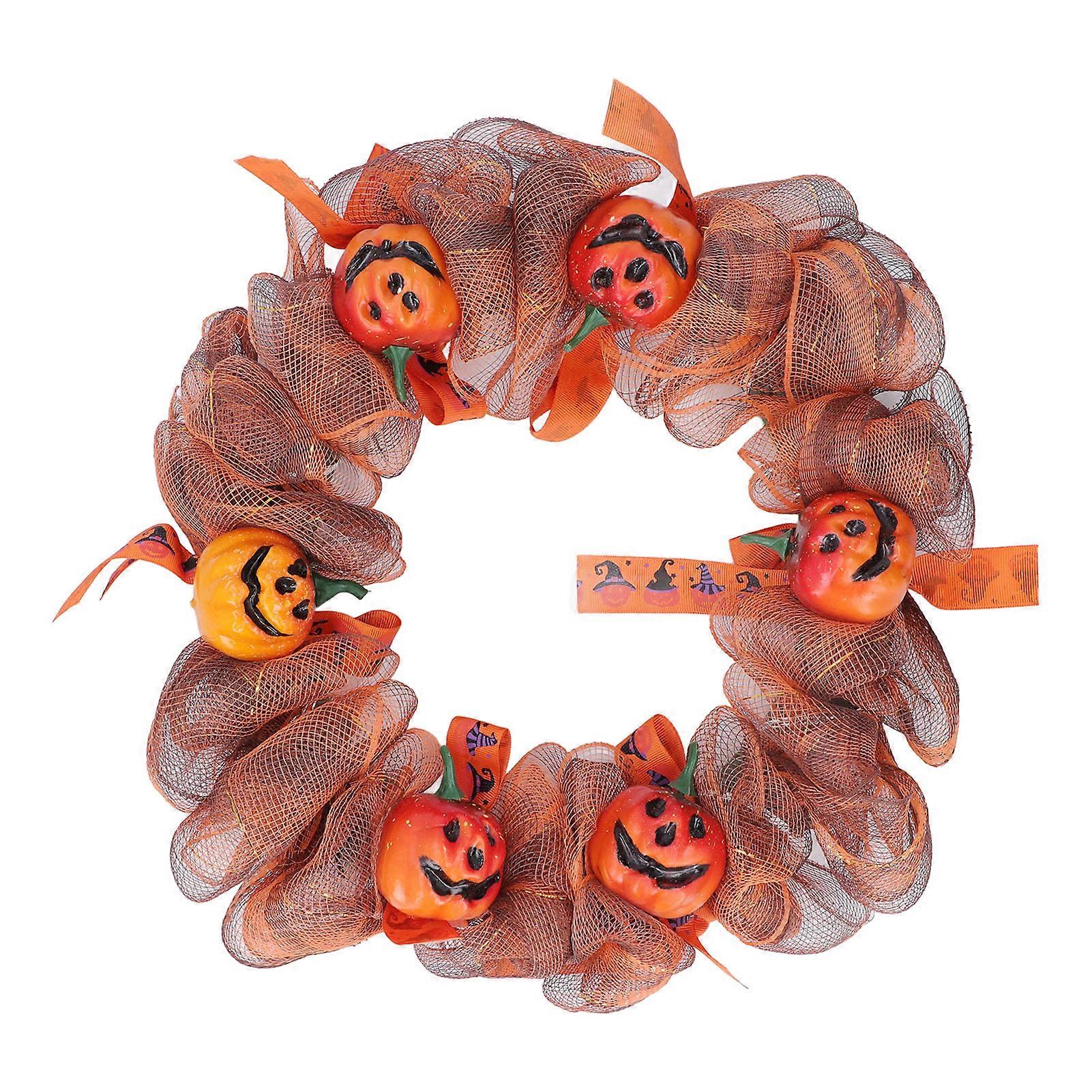 Halloween Door Wreath Decorations Front Door Hanging Pumpkin Mesh Wreath For Walls Windows Tables