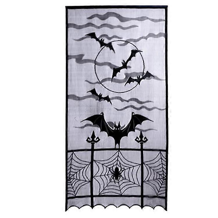 halloween Door Curtain Skull Bat Spider Web Black Lace Door Curtain Mesh Home Door And Window Decoration Fabric - Bat Curtainblack1pcs
