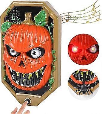Halloween Doorbell Decoration Halloween Pumpkin Doorbell with Creepy Sounds Luminous Pumpkin Doorbell with Pop-up Spider for Indoor Outdoor Home Decor