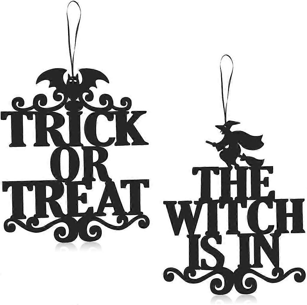 Halloween Hanging Sign Decorations Non-woven Trick Or Treat And The Witch Is In For Door And Wall Decoration Indoor Outdoor Yard Haunted House black2p