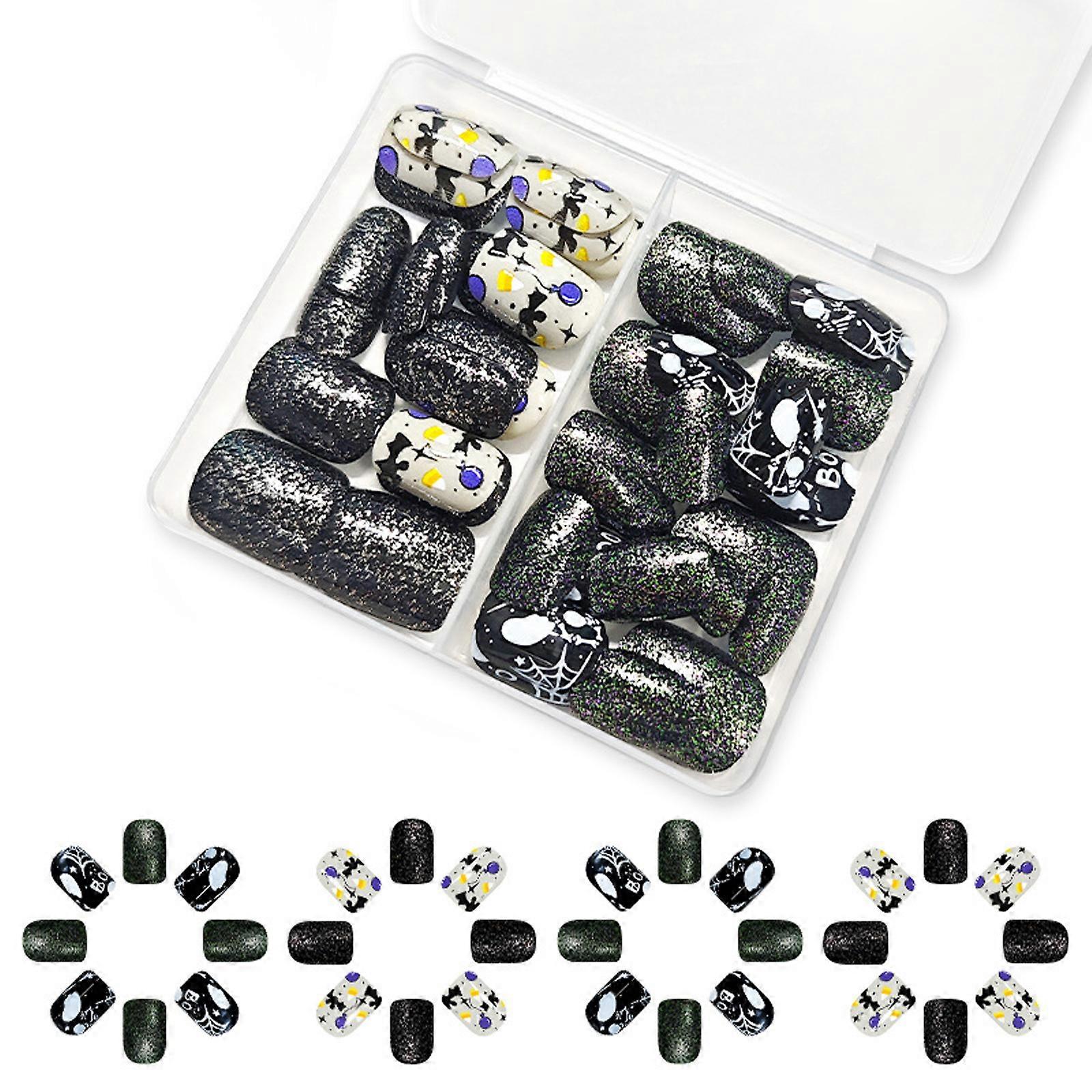 Halloween Fake Nail Square Press on Nail Glues on Nail Spiders False Nail Acrylic Nail for DIY Manicure Decorations