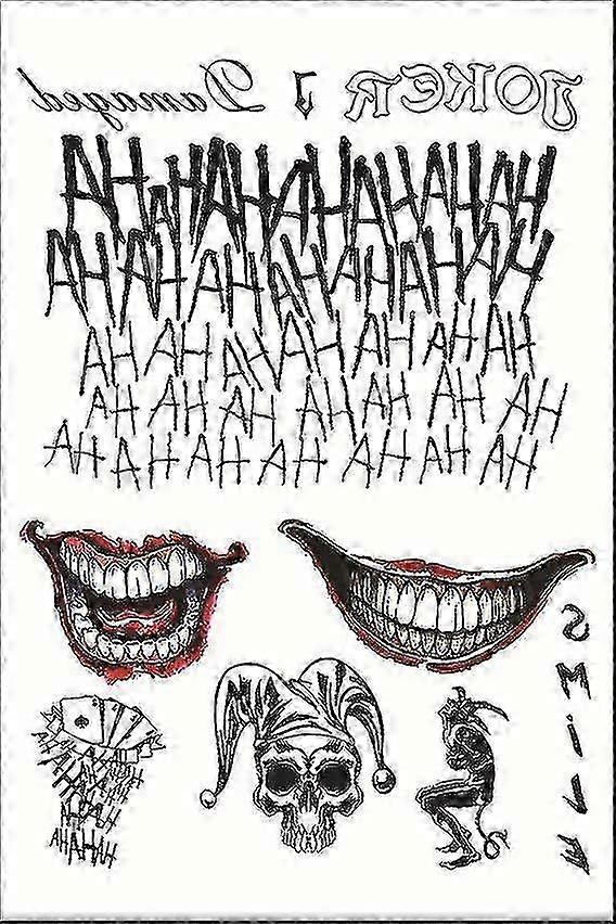 Temporary Tattoo - Women - Girl - Carnival - Halloween - Cosplay - Suicide - Movie - Tattoo - Gift Idea, 2 different styles, very similar realistic joker, perfect for your joker halloween costume and cosplay. Each sheet is 20*30cm/7.87*(11.8inch), bigger, more professional than other seller, apply these body stickers in seconds and like you are the real Clown man, perfect to complete the look. Durable, waterproof and removable, lasts 3-5 days, easy to apply in 10-20 seconds with water, and easy to remove by rubbing alcohol, body oil, olive oil Applicable occasions, wear them day or night and change them instantly Great for Halloween Costume/Cosplay Props Party, Carnival, HQ The Joker, Suicide - Movie Packing list: 12 pieces*clown tattoo stickers Do not include other items except the product