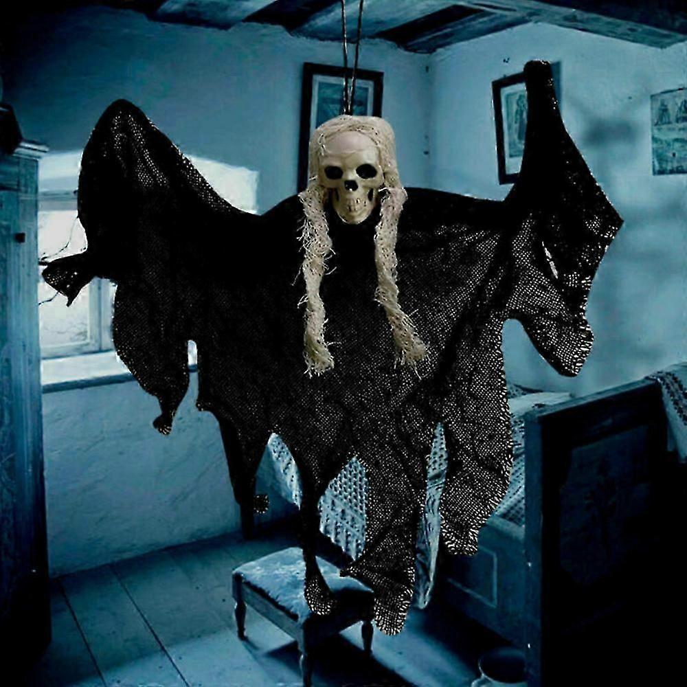 Halloween Spooky Hanging Ragged Skeleton Ghost Ornament, Grim Reapers Props Party Skull Gauze Grimace Hanging Ghost Skull Outdoor Indoor Decoration