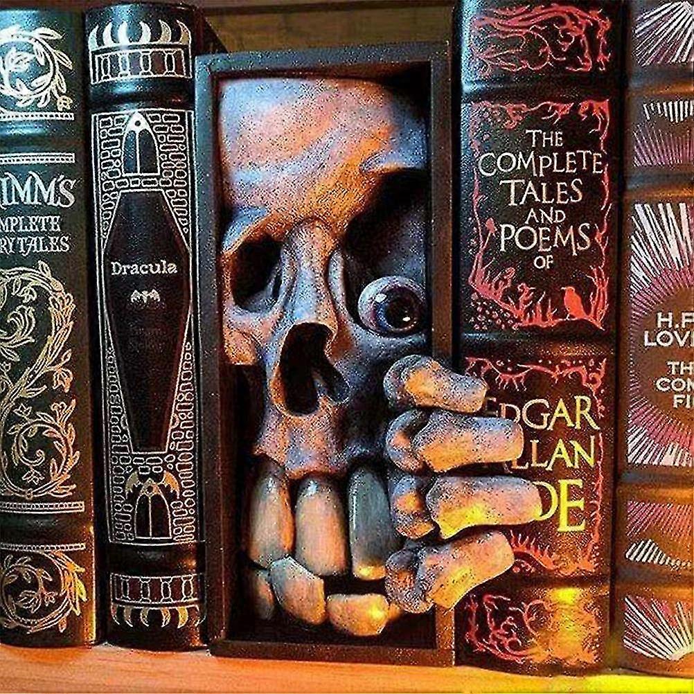 Halloween Human Face Resin Bookends Sculpture,horror Peeping On The Bookshelf Sculpture Bookstand Bookshelf Decor