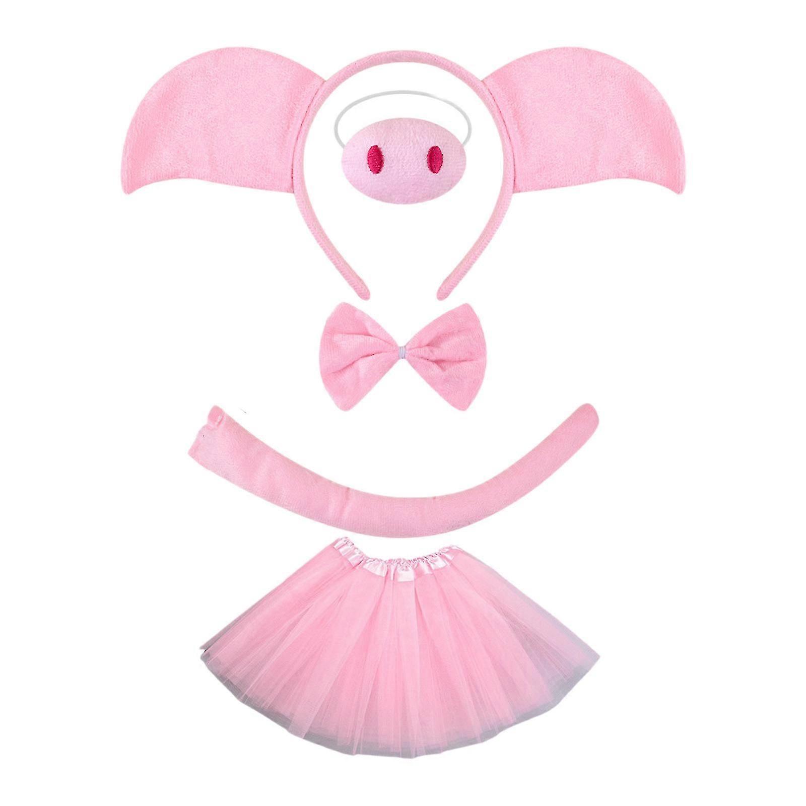 Halloween Animal Outfit Pig Costume Accessories with Headband Tail Nose Bowtie Skirt for Kid Adult Halloween Birthday