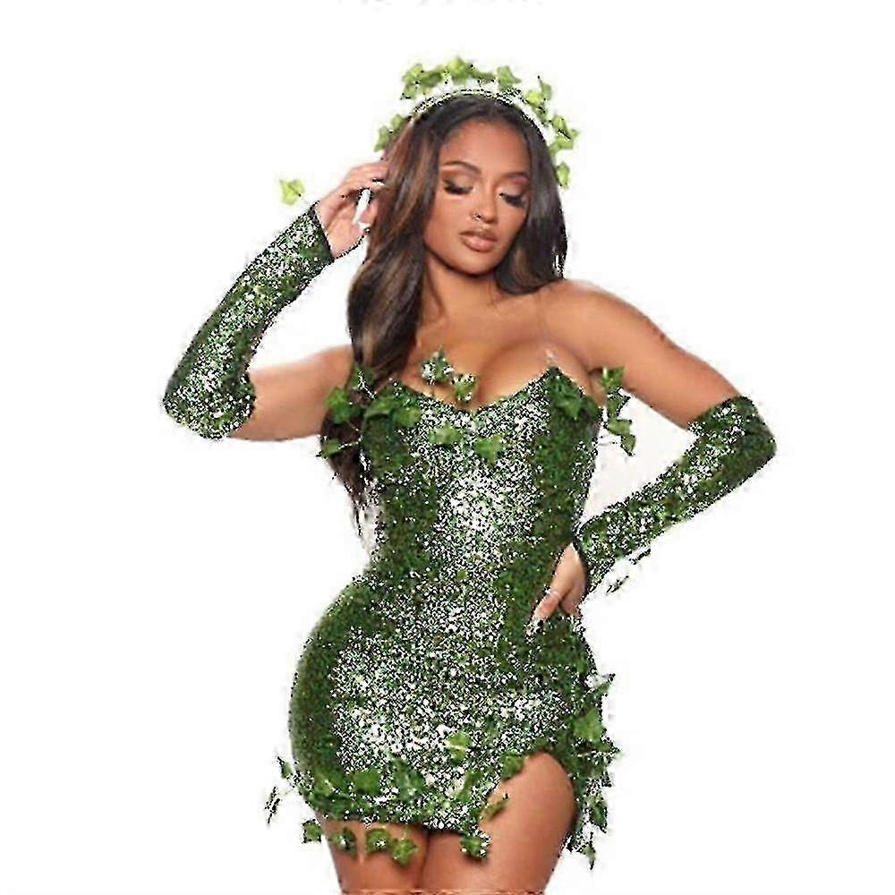 Halloween Villain Poison Ivy Cosplay Costume Fancy Dress For Women Carnival Party Sequin Dress Set