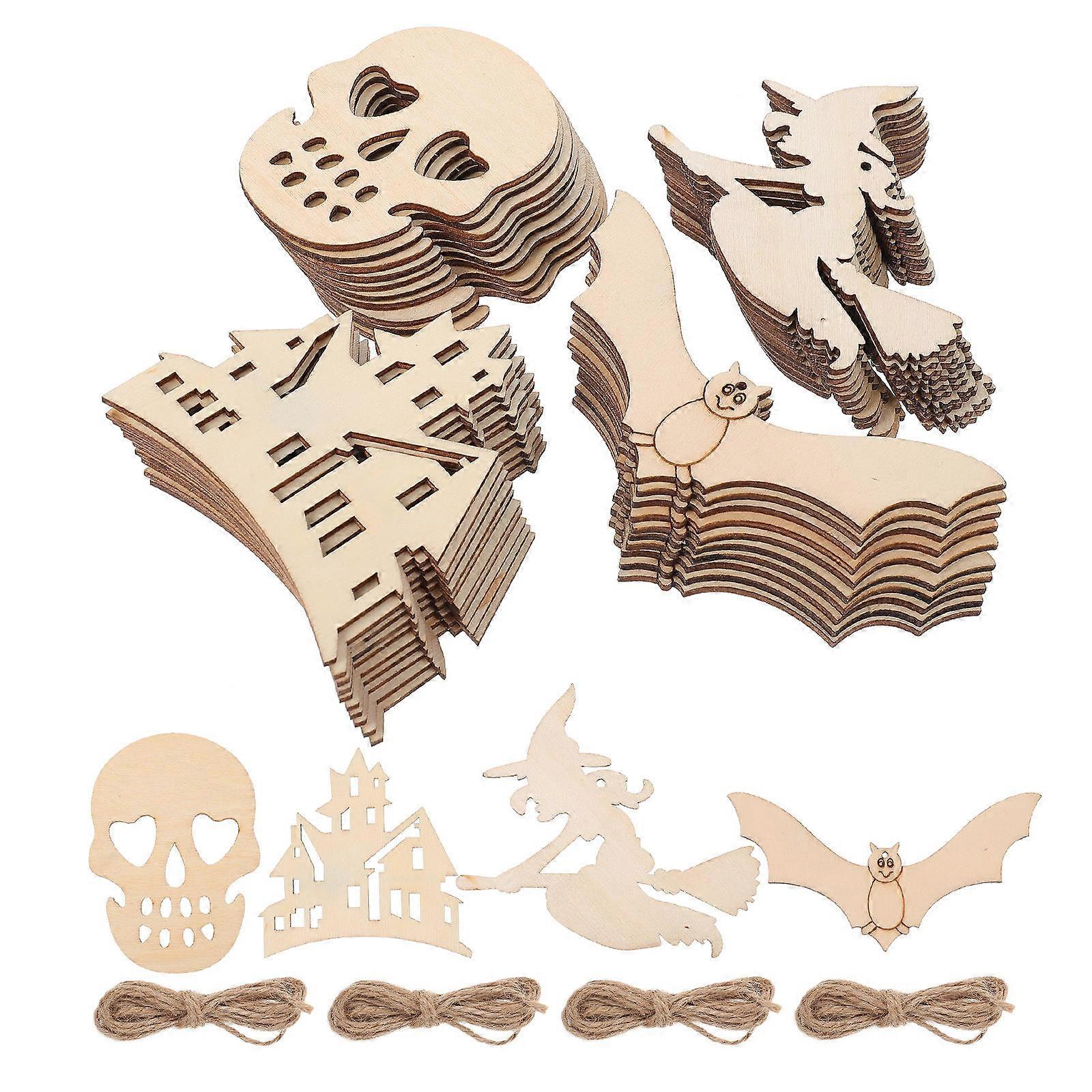 If you are looking for some unfinished wooden slice with reliable quality and , I will tell you that our Halloween wooden slice will be your . We adopt wood material, can keep it for a long time. It is easy to paint or graffiti. Features -Color:Khaki -Material: Wood, rope -Size:7.80X5.50X0.30cm/3.07X2.16X0.12in (Skull); 8.20X7.20X0.30cm/3.22X2.83X0.12in (Castle); 11.30X4.00X0.30cm/4.44X1.57X0.12in (Bat); 8.80X9.00X0.30cm/3.46X3.54X0.12in (Witch). -It is made of sturdy wood material, durable and not easily . -The wood chip is a children's DIY graffiti toy, which can help stimulate children's imagination. -This interesting wooden slice set is a suitable children on Halloween, they will like it. -You can paint or color it with paint to create unique DIY Halloween theme handicrafts. -With delicate appearance and enough quantity, our products can meet your different needs. Package list: Halloween Cutouts 4× Rolls of Rope