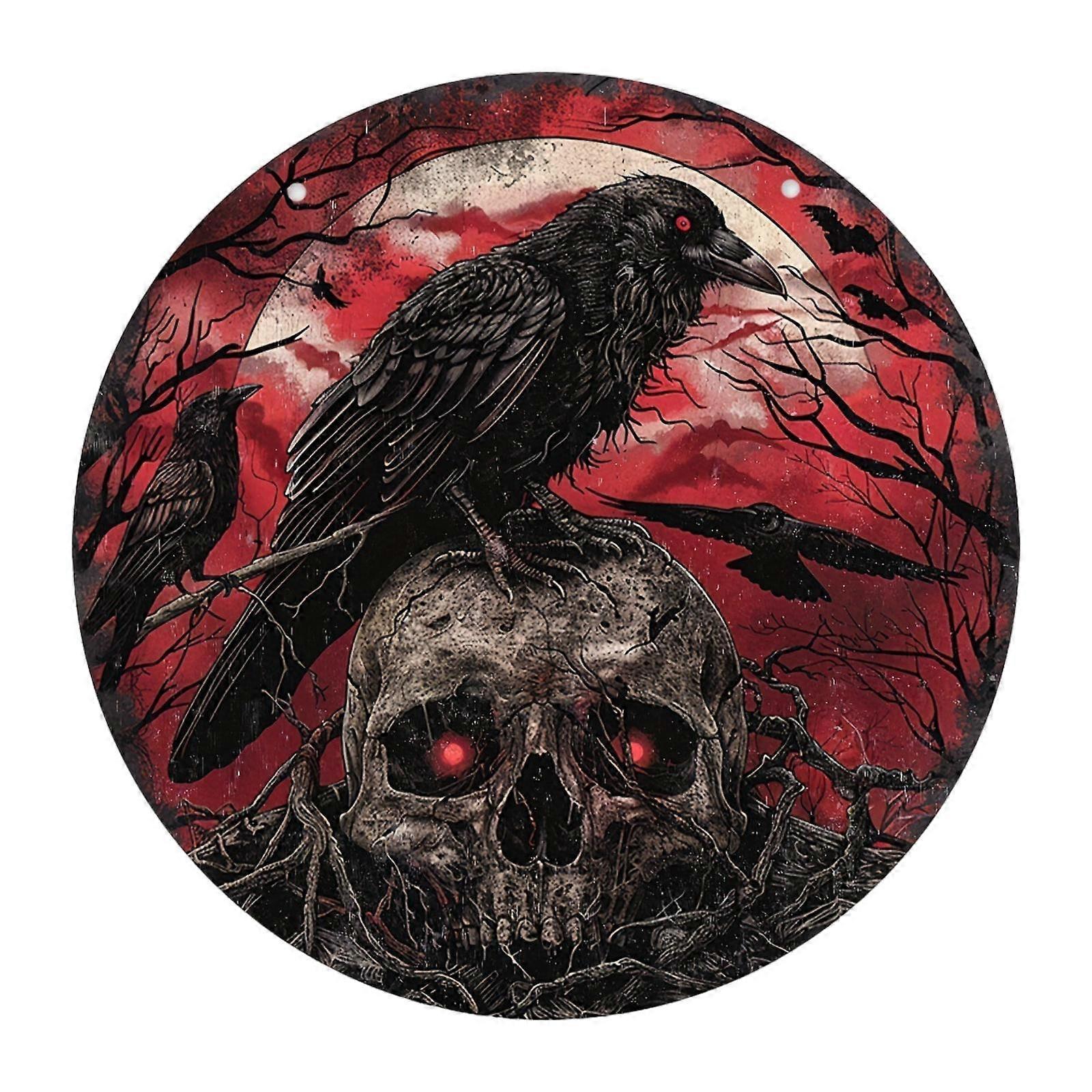Halloween Wooden Hanging Sign Halloween Decor Skull Round Rustic Wood Sign