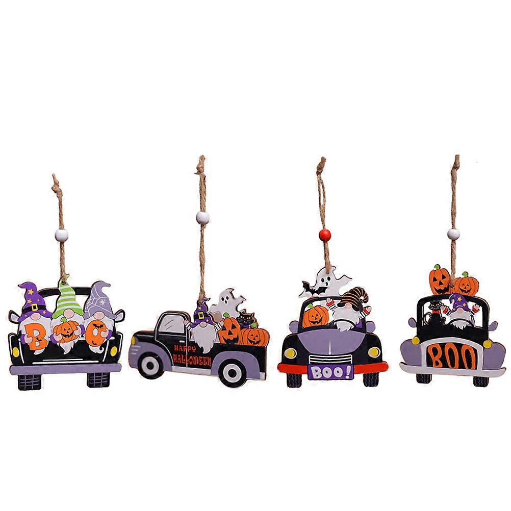 Halloween Wooden Car Hanging Ornament Holiday Ornaments Home Decorating Assorted Color 10.5X7CM Home Decoration 4Pcs