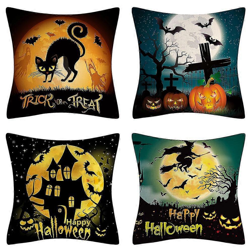 Halloween Pillow Case, Scary Night Trick Or Treat Pillow Cover, Happy Halloween Linen Sofa Bed Throw Cushion Cover Decoration(4 Pcs, Black)